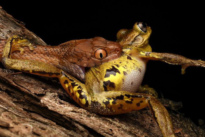 В этом ему помогает кислота и особые ферменты, которые он выделяет. Они размягчают панцирь и бедолага съедается живьём, запертая в собственном домике. Есть даже песня про это: "Скоро рассвет. Выхода нет" 😊
