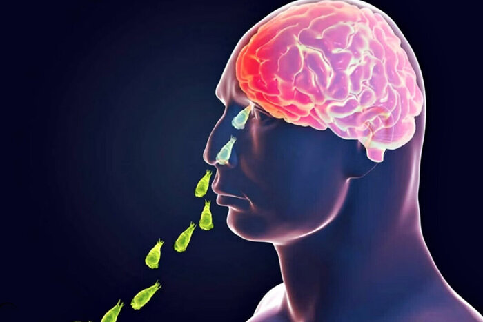 В человека паразит проникает исключительно через нос, откуда по обонятельному нерву попадает в мозг, и начинает им питаться. Что, конечно, приводит к смерти, причём довольно мучительной и скорой. Это заболевание называется первичный амёбный менингоэнцефалит (ПАМ).