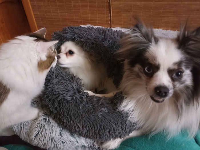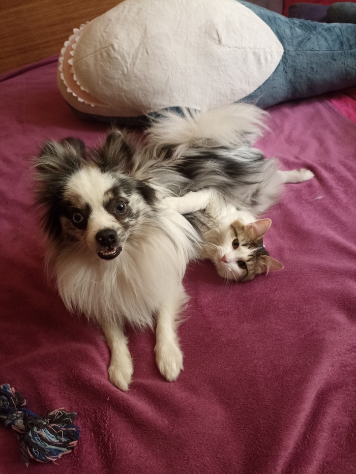 Адаптация? Да не было у него адаптации, он зашел домой и сразу понял что теперь он тут живет 😅 никакого скулежа по мамке, переживаний, страхов. Моментально освоил все свои игрушки, нашел лежанку, плед, вкусняшки - в общем парень у нас очень адаптивный и контактный) их отношения с котом вообще не доставляли хлопот (тут коту прям респект. Он у нас домашний, собак видел пару раз в жизни - но щенка принял сразу)