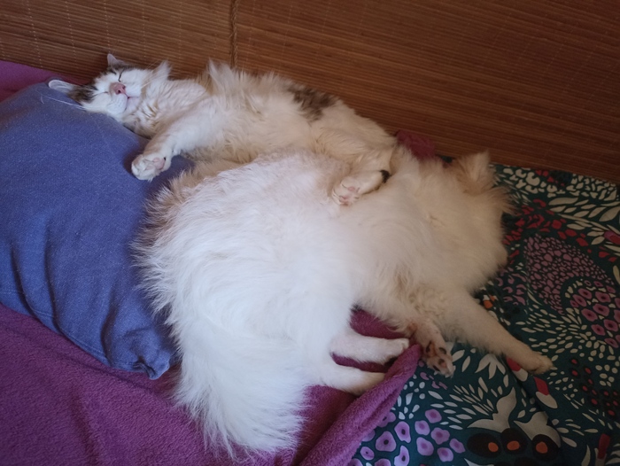 когда он прыгает обниматься, если ты лежишь, рискует отбить тебе почки (а прыгает он оооочень высоко). Кот иногда ныкается от него по углам, тк пёс стал больше кота и постоянно пытается «доминировать», а кот жалеет и не дает мелкому люлей))