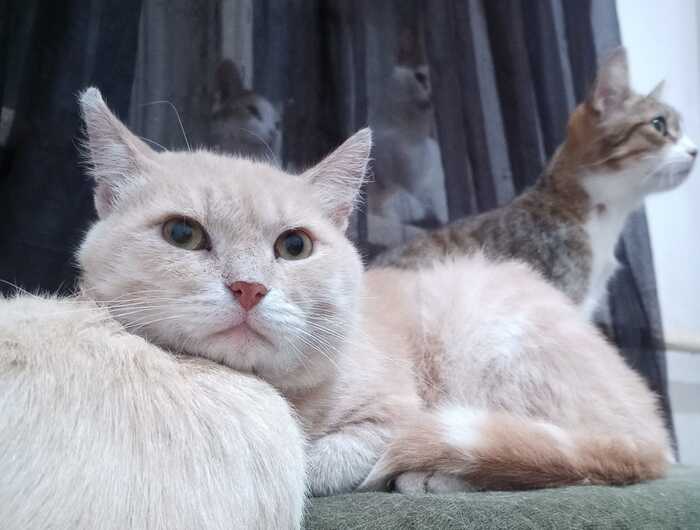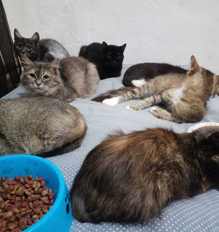 За шторой .Цветочница и новенькая,возле Персика -младшего Вишня и Голубоглаз .Другие не попали в кадр