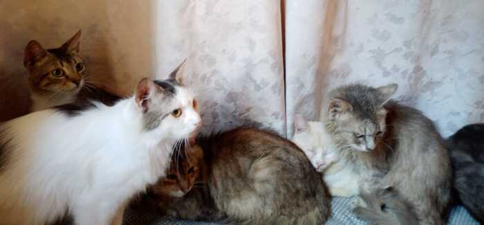 Всем привет !Немного о котах .У меня мини-приют .Все коты и кошки подобраны с улицы или забраны, когда их новые хозяева выкинули на улицу в связи с новым ремонтом, переездом или вступлением в наследство .Все животные доживают свой век ,без вмешательства усыпления.По возможности лечу ,стерилизую , кастрирую. Молодых и котят (если кошка в положении была подобрана) выхаживаю и пристраиваю в порядочные семьи ,где уважают, чтят ,любят животных.