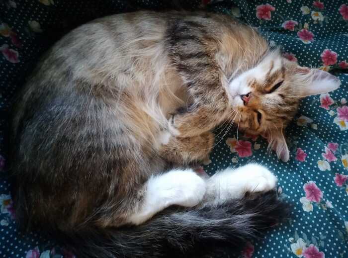Приехали в зоогостиницу, выбежало это чудо, мурлычет как трактор, ласковая и совсем малюсенькая) Нам волонтеры рассказали что ее изъяли у какой-то странной женщины которая Марусю держала как фабрику по производству котят, рожала кошка без перерывов. Волонтеры ее забрали и стерилизовали, нашлись люди которые ее захотели забрать, клялись божились что забирают в квартиру, в итоге волонтеры решили проверить как она живет, съездили по адресу а там Маруська, во дворе частного дома вся чумазая и худая, ее естественно забрали обратно, и Маруся влипла на 3 года в колонию в зоогостиницу, в коморку 1на1. 3 года она жила просто считай в коробке, за ней никто не приходил и не интересовался.