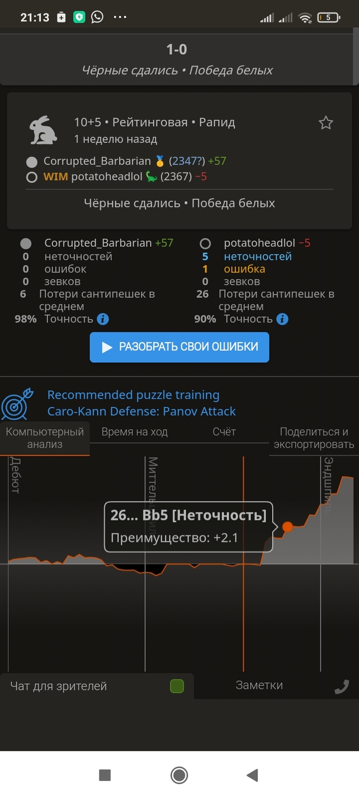 И, конечно же, выражаю благодарность руководству шахматной школы "Олимп" https://schoololimp.ru! Благодаря их помощи удалось пригласить самого Грищука. А это было непросто! Они были готовы подстраховать с инвентарем, если бы пришлось проводить турнир не на шахматной площадке. И именно там работает наш победитель, @kartviller, а вместе с ним и другие лучшие тренера Москвы. Если вы хотите подтянуть свои шахматные навыки или отдать ребенка заниматься, лучшего места не найти! Я сам там некоторое время занимался и буквально за несколько месяцев вырос примерно на 150 пунктов, плюс получил серьезное фундаментальное понимание многих неочевидных без тренера вещей. Так что могу с чистой совестью рекомендовать эту школу, там здорово.