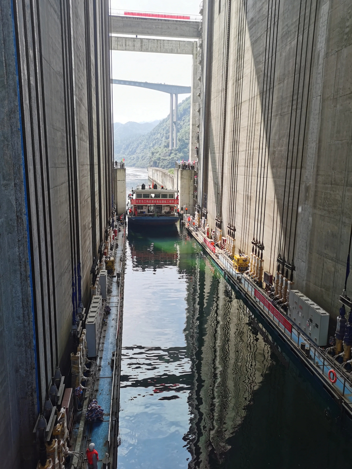 Уникален он не своими масштабами или грузоподъемностью(тот же лифт для кораблей при ГЭС "Три ущелья" поднимает в разы больше. А именно тем, что перепад высот настолько большой, а местность вокруг настолько анти-строительная, что единственным выходом стало поднятие судна в два этапа.