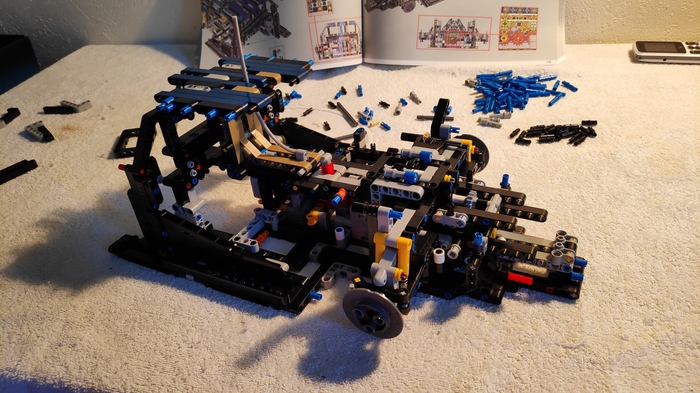 В оригинале все уложено в коробки поменьше и пронумеровано, колеса вставлены в отдельный подиум. Здесь же все упаковано в полиэтиленовые пакеты и подписаны фломастером. В моем случае пакетов было пять, что странно. Так как в инструкции их указывается тринадцать. В каждом пакете просто дохерища пакетиков поменьше (я насчитал 80!! шт.). В каждом пакетике детали от конкретного этапа, однако они немного перепутаны (некоторые детали от первого этапа лежат во втором и наоборот). В целом, все расфасовано удачно, нужды открывать все и искать во всем скопище деталей не было.