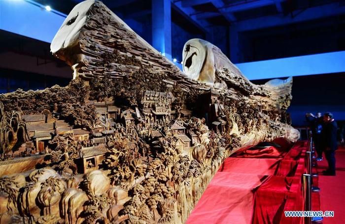 На создание этого произведения высотой почти 3,1 метра, длиной 12,4 метра и весом около 30 тонн у художника Чжэн Чуньхуэя из провинции Фуцзянь ушло 4 года. Огромная скульптура из камфорового дерева воспроизводит панорамную картину «По реке в День поминовения усопших», созданную в XII веке. «Полотно» Чжэна было включено в 2013 году в Книгу рекордов Гиннесса как самая длинная резная скульптура.