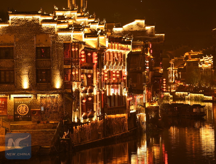 Древний городок в уезде Чхэньюань провинции Гуйчжоу особенно прекрасен в новогоднем убранстве.