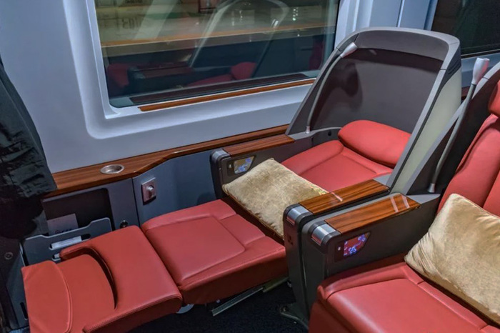 В поезде 3 класса вагонов: второй класс, первый и бизнес. Расстояние между рядами сидений для второго и первого класса составляет 1 020 мм, различия заключаются в ширине и количестве сидений в вагоне. В вагонах установлены USB-розетки, имеется Wi-fi и прочие радости современной технической жизни, приличествующие современному транспортному средству.