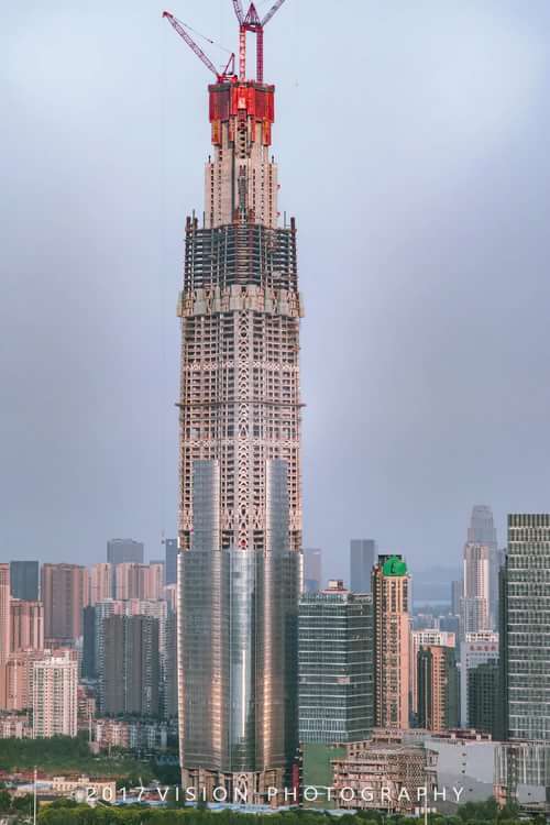 Этот огромный комплекс высотой 39,3 метра и весом 2000 тонн, созданный китайскими инженерами, позволяет обеспечивать как скорость, так и надежность работ при возведении высотных зданий. Фактически он выступает как платформа, с которой могут работать строители. Благодаря комплексу один этаж теперь можно построить всего за 4 дня! Сейчас комплекс задействован в строительстве 636-метрового Wuhan Greenland Center в провинции Хубэй, который должен быть завершен уже в 2019 году. Небоскреб должен стать самым высоким зданием Китая.