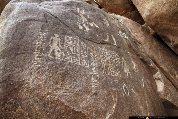 Флиндерс Питри посетил остров Сехель в 1887 году, где произвел подробную фотосъемку артефактов и сделал прорисовки надписей, покрывающих многочисленные валуны и скалы острова. Два холма в юго-восточной части острова содержат более 250 надписей, многие из которых посвящены богине Нильских вод Анукет и богу-создателю Хнуму. Эти надписи датируются периодом, начиная со Среднего Царства и заканчивая Поздними Птолемеями.