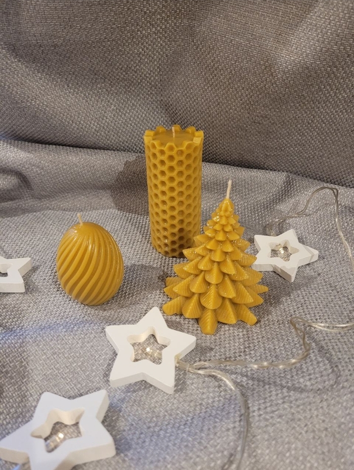 Ну и понеслось...ёлочки, шишечки, зайчики, цветочки. Всё очень милое, пахнущее летом и мёдом. Головка воска уменьшается, а полки заполняют всевозможные фигурки.