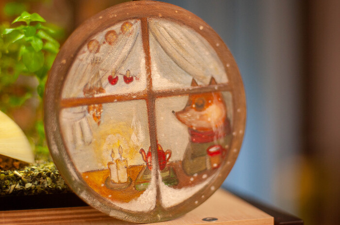 И вот уже лис сидит у окошка в уютном теплом свитере. Пьёт чай, смотрит на снег и радуется атмосфере уюта. Время тянется, монотонно потрескивает свеча и аромат чая наполняет дом. А у вас дома так же уютно?
