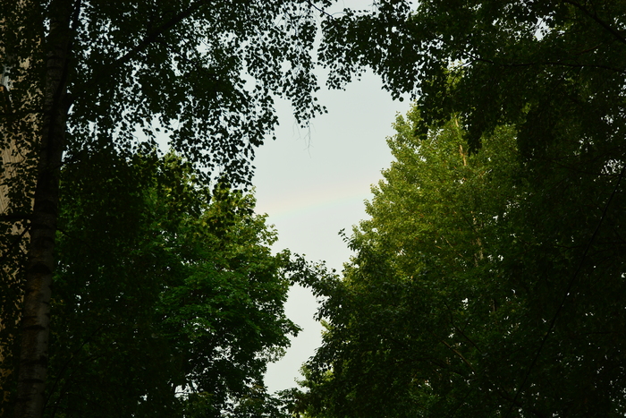 А вот и первый на это намёк! Вижу радугу, но пока она меж деревьев, поэтому мне надо выбраться на открытое место: