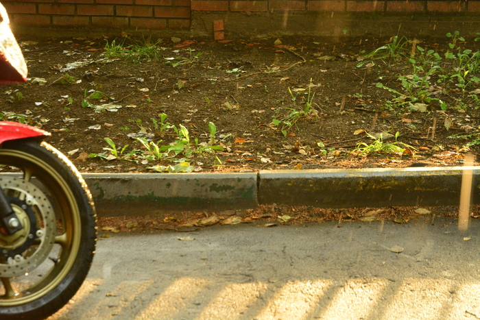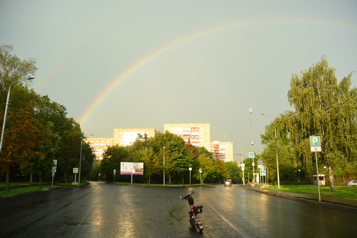 Да-да, дождь ещё больше усилился, так что пришлось на необычном для себя ускорении домчаться до крыши, а там уже нас с самокатом оставить просыхать. Это фото подтвердит: