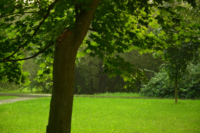 Но ирония судьбы в том, что под деревом очень удобно пережидать дождь, который к моменту моего приезда даже усилился: