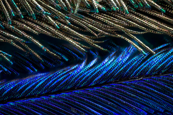 Фотограф из Британской Колумбии Вальдо Нелл (Waldo Nell) посвятил целую серию макрофотографий перьям павлинов. Стоит отметить, что под микроскопом они выглядят еще более поразительно.