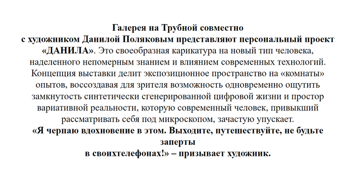 Ghost687 Ghost687's channel Выставка от департамента культуры Москвы 1 месяц назад Перейти к видео https://trubnaya.vzmoscow.ru/danila Показать полностью 7 Выставка Достопримечательности Москва Видео Короткие видео Длиннопост Неведомая хрень 5 1 Ещё 0