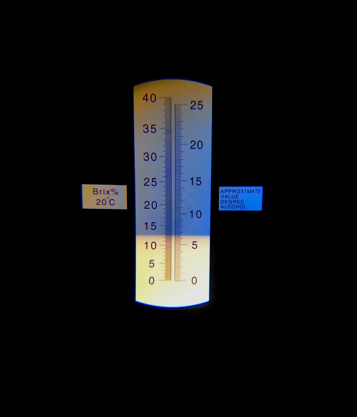 По окончании брожения (ежедневно беря каплю сусла на пробу для измерения плотности рефрактометром). Когда плотность остаётся неизменной в течении 2-3 дней (остановилось на 6+), разливаем пиво по бутылкам на карбонизацию, добавив четко отмеренное количество глюкозы (в результате весь углекислый газ, образовавшийся при сбраживании дополнительно внесенных сахаров, остается в пиве. При дображивании в бутылках дрожжи частично перерабатывают кислород, неизбежно попавший в бутылки при розливе, а также другие побочные продукты, оставшиеся после основного брожения, что положительно отразится на вкусе пива. Также для такого метода не требуется покупка дополнительного дорогостоящего оборудования, и при карбонизации в бутылках мы сразу получаем продукт, который удобно взять с собой).