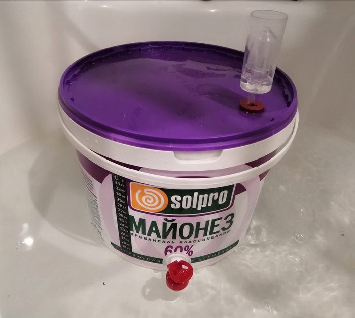 Ферментёр тщательно моем, обрабатываем антисептиком, наливаем в гидрозатвор кипячёной воды и сливаем остывшее сусло в него из котла и берем каплю сусла для измерения в нем плотности, забыла сфотографировоть, была равна 13.