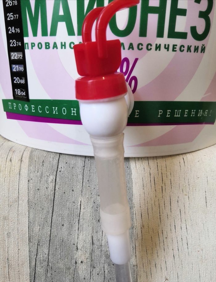 Чтобы не мучиться с воронкой при розливе и исключить обсеменения пива бактериями приобрели трубку с клапаном для розлива пива по бутылкам. Она позволяет аккуратно, без брызг разлить пиво по бутылкам и минимизировать контакт пива с кислородом с помощью встроенного клапана. Пиво льется только когда конец трубки надавливается дном бутылки (её также со всех сторон обрабатываем антисептиком).