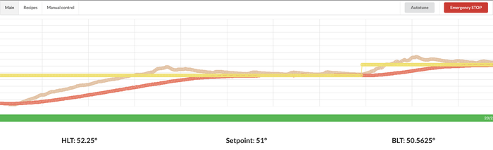 Казалось бы, способ тоже рабочий, но хер там - сходу обнаружилось, что между HLT и заторником есть разница температур, причем нелинейная - если, скаже на 43 градусах она составляет 1 градус, то на 78 уже около 4. И это не самое страшное, самое страшное, что PID тут уже не особо поможет - нужно поддерживать температуру заторника, но контролировать HLT, пробовал по-всякому, но так и не нашел статей по этому поводу, свою математическую модель разрабатывать очень не хотелось....