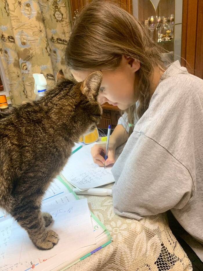 Котэха Милашка, помогает делать алгебру Лизе (племянница жены).
