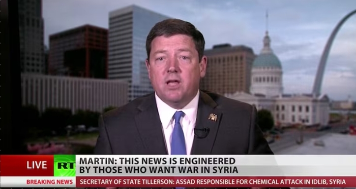 За несколько часов до того, как президент Дональд Трамп объявил о ракетных ударах США по Сирии в ответ на химическую атаку, в результате которой в апреле 2017 года погибли 90 мирных жителей, Эд Мартин заявил в эфире российского государственного телеканала RT America, что президент Сирии Башар аль-Асад, возможно, не виноват. Вместо этого, сказал Мартин зрителям, ситуация была «сфабрикована» в Вашингтоне «людьми, которые хотят войны в Сирии».