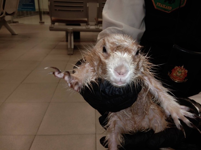 Власти Таиланда были потрясены, когда поймали туриста, пытавшегося провезти через аэропорт двух выдр и прерийную собаку - в брюках.