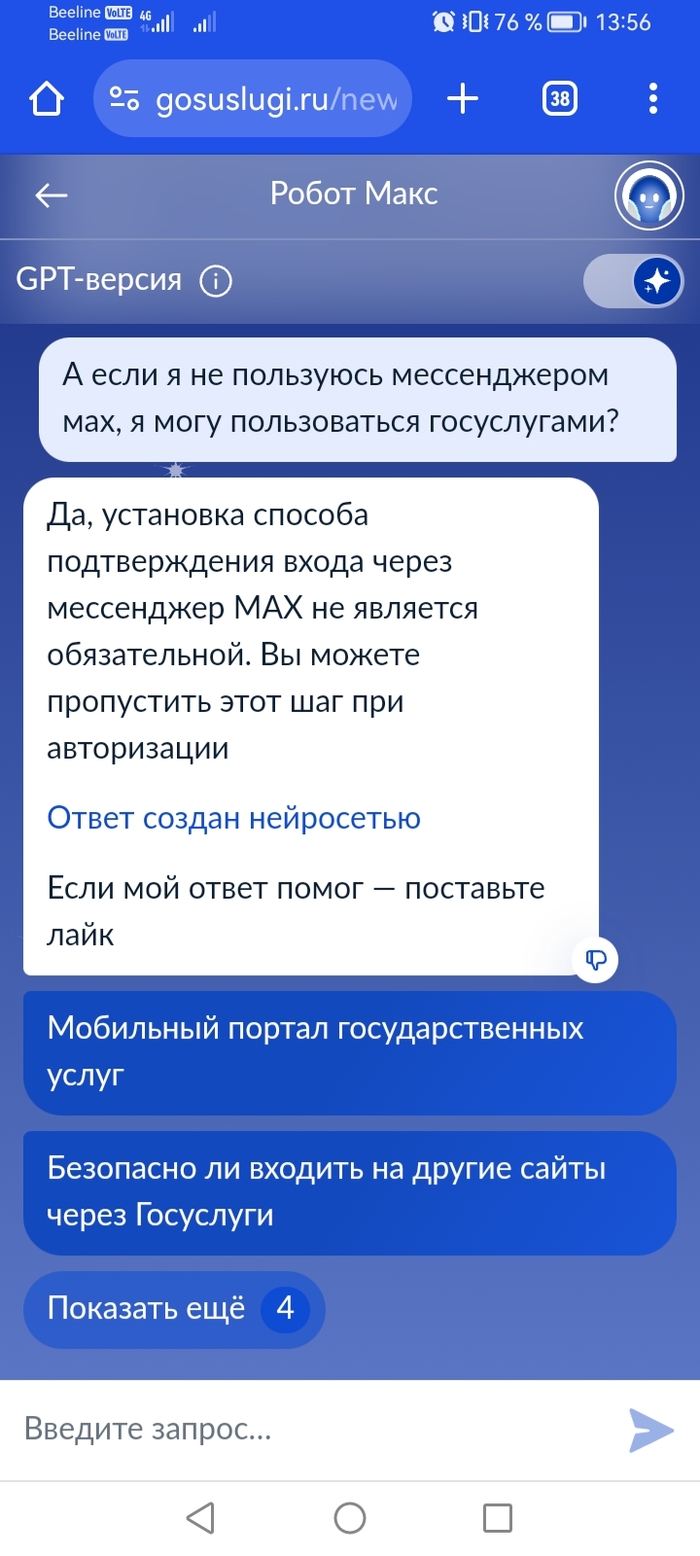 Я не могу зайти в госуслуги. 😡 ещё вчера были смс и кнопка пропустить, сегодня одна кнопка - подключить мах, и больше нет ничего. Версия для пк с мобильного не работает у меня. В комментариях пишут, что такой функционал появился не у всех, 50/50