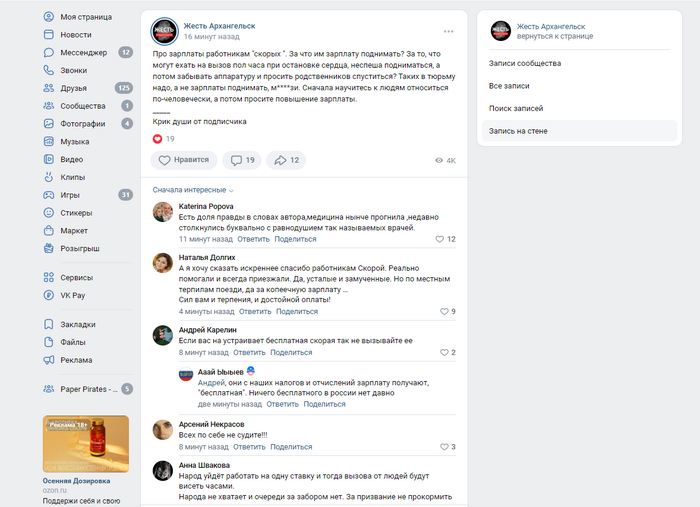 Рассматриваем вариант увидеть зарплатные ведомости и кто вообще работает (подсказал хороший человек) " Вам (врачам и фельдшерам скорой) нужно постараться "найти" зарплатные ведомости. Вангую у вас на станции вместо условных 100 человек числится 150. Мертвые души пилятся понятно кем. Поднятием ставки это не решить, нужно менять всю "вepxyшку" больничной пирамидки. С огромной долей вероятности "из Москвы" деньги приходят в "полном объеме", а вам остаются крошки и переработка за "мертвые души".