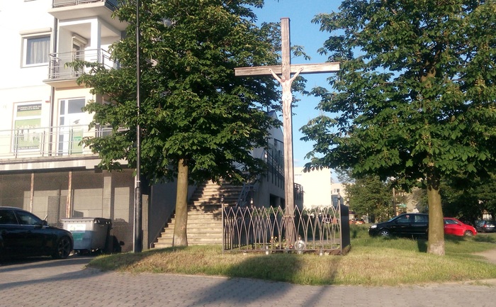 10. В некоторых дворах, даже 9 и 11 этажках, стоят двухметровые деревянные распятия. Внизу искусственные цветы, лампадки. В одной-двух всегда горят свечи. На окраине города, в частных, как у нас говорится, домах можно видеть во дворах стоят маленькие алтари, обращённые к улице (не знаю, как правильно называются. Каплычки?).