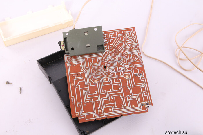 Следующий у нас МК-42. 1990 год, тоже ПО Светлана. Цена 100 руб. Видно, насколько поработали над технологичностью изделия. Печатная плата теперь односторонняя, микросхема одна - К145ВХ1. Выводы ВЛИ уложены в пластиковый сепаратор, а не индивидуально одеты в кембрик. Впрочем и математические функции проще.
