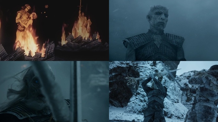 4 То что воспринималось как намеки и предпосылки оказалось банальными фейлами постановки. К тому же сценаристы забили на Мартина и логику. Что мешало Королю Ночи создать подобие себя вонзив в грудь одного или нескольких крастеровских младенцев кусок обсидиана? Тогда бы уничтожение всего живого прошло куда эффективнее. Да и изображения главы ледышек в пещере Драконьего Камня намекали что он такой не первый.