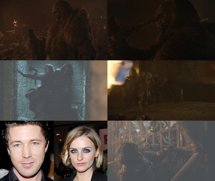 Про схватку во дворе и внутри замка надо сказать отдельно. Проломивший ворота великан по-идиотски сливается малолетней дуре. Нужно же в угоду феминизму оправдать шизофрению из прошлой серии. Это когда желавшую сражаться малолетку спровадили в крипту, а такую же Лианну благословили командовать и сражаться. Хоть великана после тонны мемов додумались вооружить! Лезущих на стены мертвецов никто не хочет полить горячей смолой или маслом и поджечь. Как я уже писал к обороне готовились спустя рукава. Даже заранее поставить всех лучников на стены никто не подумал. Арья бессовестно читерит рубя толпы зомби... копьем! Впрочем Червь тоже от нее не отстает в этом плане. Сандор в прошлом сезоне бывший в куда худшей ситуации начинает трусить. Это что за нелогичный повтор Черноводной? Берик указывает Псу на сражающуюся Арью и тот кидается ее спасать. Ведь чуть ранее она спасла его пристрелив мертвеца горящей стрелой. То снова была отсылка к битве за столицу когда Клиган обещал повесить командира лучников на собственных кишках если рядом с ним хоть одна такая стрела упадет. Во внутренних помещениях Винтерфелла должно быть полно мертвецов учитывая как они толпами валят во двор. Но до нужного момента их количество снижено чтобы Арья могла поиграть в стелс-выживалку. Потом следует воссоединение с Псом и Бериком. Последнего бездарно сливают поскольку Клигану захотелось откосплеить самого себя в Близнецах. Наконец трио встречает красную жрицу которая раскрывает план сценаристов поиздеваться над логикой. Мол Владыка воскрешал Берика ради некой цели и тот ее исполнил. Что это за цель нам объяснить не удосужились. Наверное потому что Берик умер еще в 3 книге, а оживленная им против воли Тораса Кейтилин чихать хотела на Рглора и его волю. Потом Арья и Мелисандра извращают предсказание последней из 3 сезона. Там шла речь о том что Арья закроет навеки карие, голубые и зеленые глаза, а не много глаз. У Мизинца и Бродяжки были голубые глаза. Предсказание сбылось. Арья получает отсылку к Сирио Форелюи убегает хотя замок и двор уже забиты мертвецами.