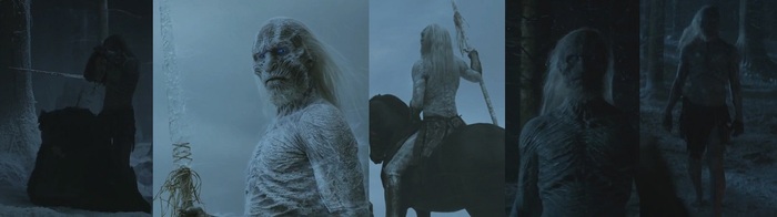 Можно конечно вспомнить что текущего Короля Ночи играет тот же человек что изображал жертву Детей Леса. Однако это ничего не значит. Ранее главного иного играл другой человек-актер Ричард Брэйк. Ныне же исполнителем роли главгада сериала является каскадер Владимир Фурдик. И причины замены по-моему очевидны-экономия бюджета. Зачем тратиться на актера если можно использовать проверенного работника, тем самым дав ему ухватить свой кусочек славы? Роль бессловесная и в отображении эмоций не нуждается. Причем такой прием был использован продюсерами еще во 2 сезоне когда харизматичного бодибилдера-актера Конана Стивенса игравшего Гору заменили на блеклого каскадера Йена Уайта.