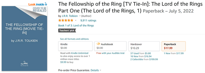 На сайте theonering.net (который опирался на источник из Reddit) появилась информация о переиздании книжной трилогии "Властелин колец", где в качестве обложек будут использованы постеры "Колец власти".