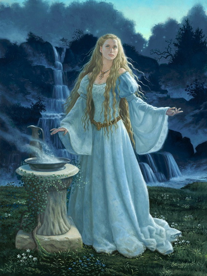 В общем, сегодня очередь прекрасной эльфийки почти 8400 лет отроду. Единственной из живущих эльфов Средиземья, видевших благословенную землю Валинора. Владычице Лотлориэна. Хозяйке кольца Нэнья. Бабушке Арвен.