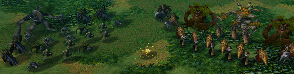 - и много других приятных мелочей, на расписывание которых здесь уйдёт слишком много места.Минусы- увы, и здесь есть. Если смешанность из обычных и нестандартных моделей не так уж бросается в глаза, то неоптимизированность карты даёт о себе знать, и очень даже ощутимо. Также хостануть карту по сети с кондачка тоже не получится. Вместе с картой разработчик вкладывает специальный ресурс-пак, содержащий все вспомогательные материалы, без которых ваш оппонент будет видеть не схватку горного великана с эльфийскими лучниками, а кучку черных пятен. Пока говорить о том, какая из двух карт на расстройку лучше, рано. Но, несомненно, работа в этой области обещает нам много интересного.