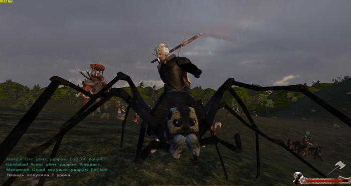добавили в игру, кроме стандартной лошади, ещё 3 альтернативных средства передвижения: гигантские пауки, мумаки и даже Крылатый ужас! Но опять же не довели дело до конца. Из мумаков практически невозможно сражаться, потому как вы управляете им, в буквальном смысле, из самого сердца, что исключает возможность затыкать противника копьем, а стреляя из лука, постоянно попадаете в своего “питомца”, затоптать кого - либо, как бы это смешно ни звучало, почти что нереально, да и видок сквозь текстурки элефанта не лучший. Крылатая тварь летает над землёй условно, она, скорее, парит, так что любой может достать всадника копьем, а самому наезднику трудно отомстить обидчику, потому как широкие крылья закрывают весь обзор.