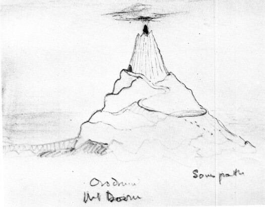 При жизни Толкин создал набросок-рисунок Ородруина, где отчетливо изобразил её очертания, тропу (или дорогу) Саурона, Саммат-Наур и горящую вершину.