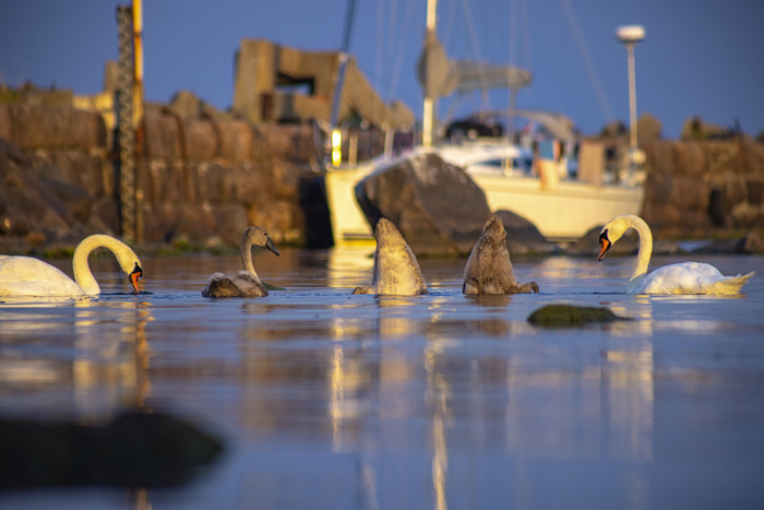 В 7 утра вышли с Крестовского острова, около 17-18 пришвартовались у затопленного плавдока, в середине которого нашелся катер, незнаю пока ни что тут делает плавдок в таком состоянии, ни катер, но совершенно точно не швартуйтесь к пирсу на Мощном, он очень высоко, нужна будет лестница и он разбит. На Мощном, катаясь на великах мы нашли два маяка и пляж с тиной, купаться было неприятно.