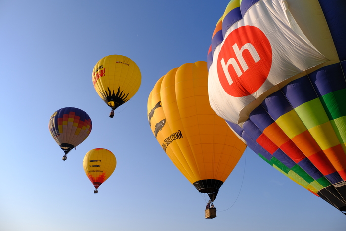 Шары летают или ранним утром, или вечером - сильная зависимость от метеоусловий. Я приехал посмотреть на утренний взлёт. В 6 часов они взлетели, и уже через 15 минут шары ветром унесло за лес. Всё, посмотрели, пора уезжать. Но красиво!