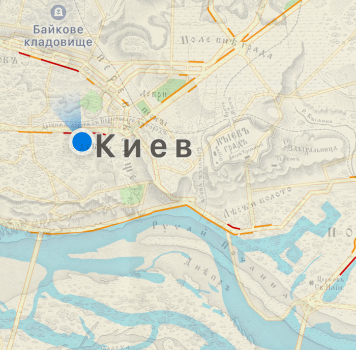 На последнем фото, я постарался максимально точно(насколько это возможно) показать вам расположение старого Киева. Это территория современного Печерского и Шевченковского района Киева.