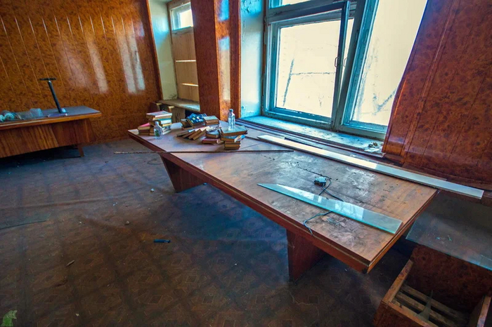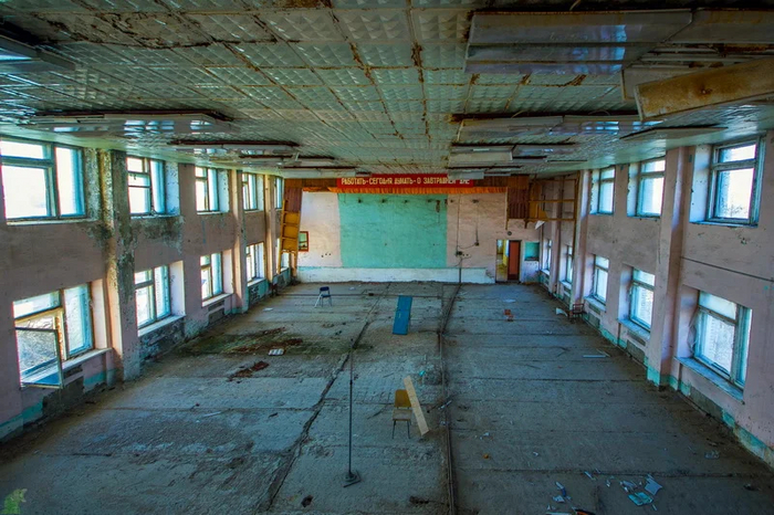 В ней в полу уцелел разворотный круг для вагонеток.