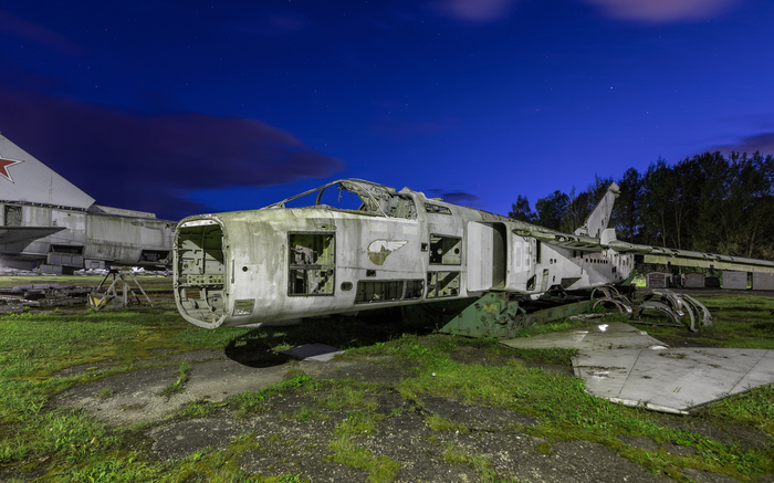 В этом месте когда то чинили МИГ-31 и СУ-24. Сейчас в основном утилизируют.