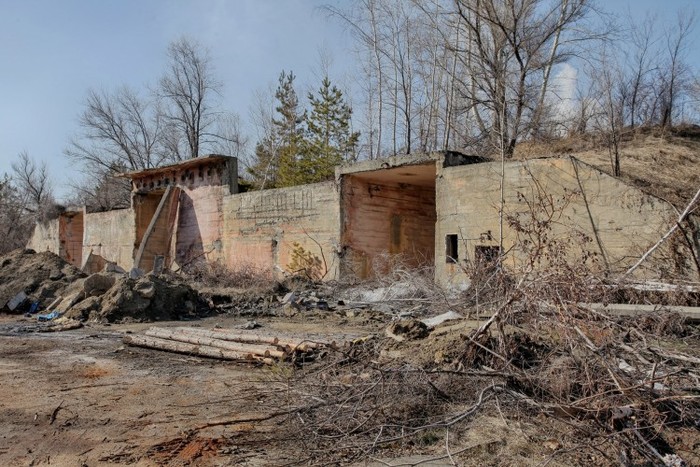 Пройдя не один километр вдоль бескрайних руин, стало интересно: а что же представляют из себя бомбоубежища БХК, призванные в своё время защищать работников предприятия от ядерных боеголовок противника и техногенных катастроф? Такие сооружения не отмечены на картах, однако их расположение и функциональность знал каждый работник производства, поскольку учения гражданской обороны проходили регулярно и охватывали бОльшую часть территории и работников БХК.