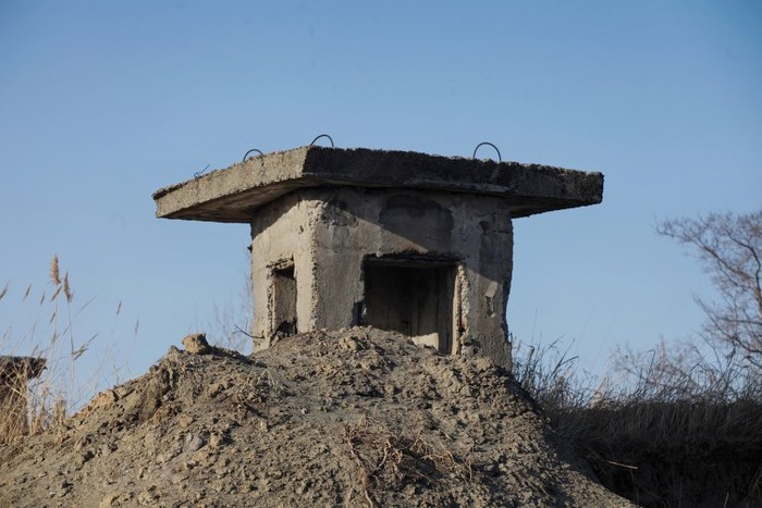 Как и следовало ожидать, защитное сооружение давно стало беззащитным. Просто большой бетонный куб под землёй, разделённый внутри перегородками на отдельные помещения. Кругом разруха, вывороченный метал и весенний талый лёд под ногами. А во льду - противогазы, фильтры и прочее прогнившее имущество ГО.