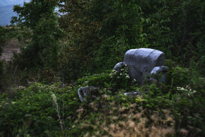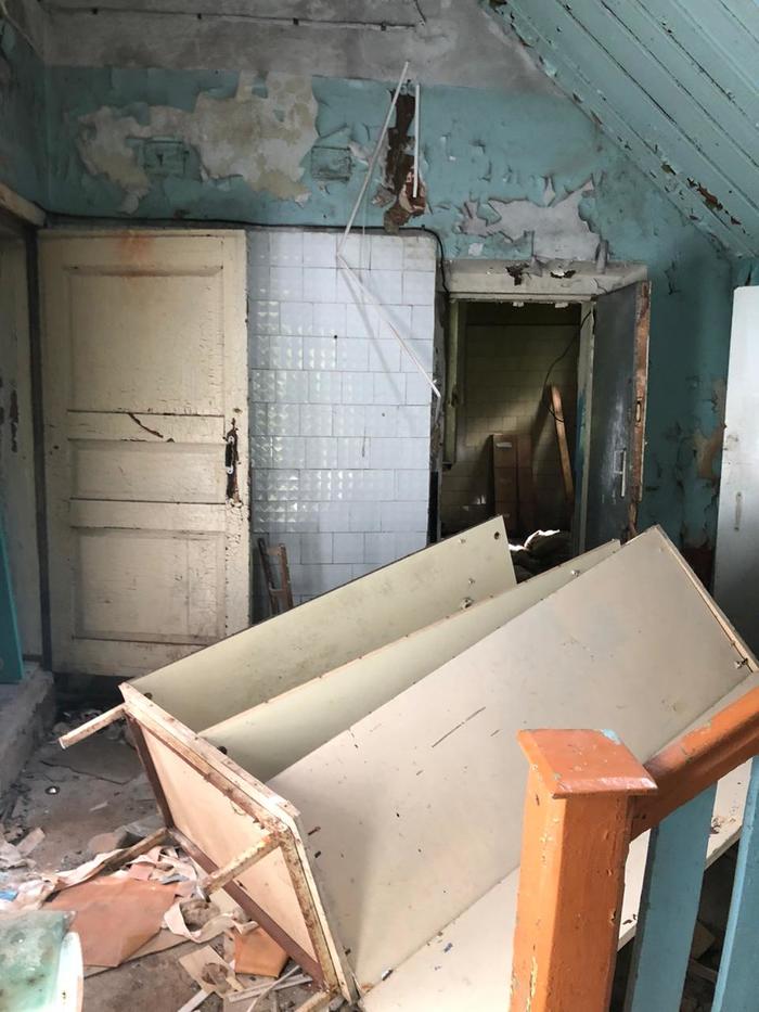 Сейчас из деревьев, которые выше дома, выглядывают только верхушки остатков стен. Если не знать где точно, в зарослях ничего не найдешь. Хотя, можно ориентироваться по запаху, потому, что там сейчас филиал дома отдыха всех окрестных бомжей и наркоманов и общественного туалета.