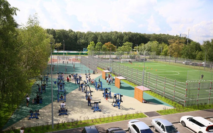В Котловке, на улице Нагорной, в природном парке «Долина реки Котловки» появился спортивный кластер с площадками для футбола, настольного тенниса и стритбола.